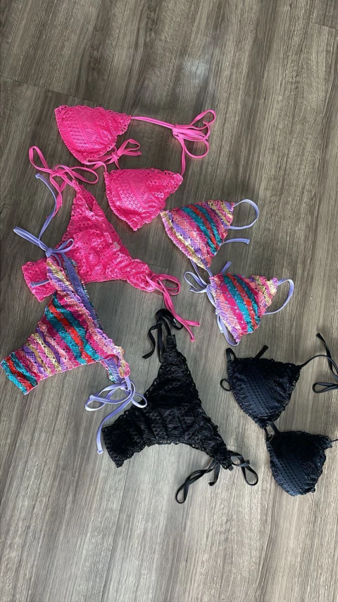 Biquíni Fit Corp dell modelo cortininha em renda texturizada, com amarrações ajustáveis e caimento perfeito.